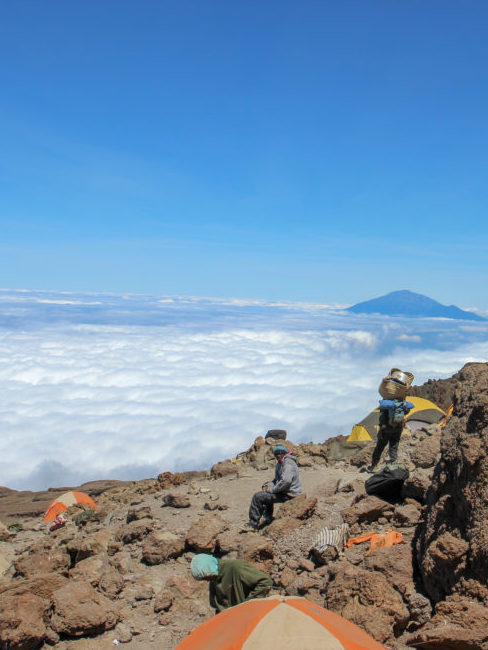 From here a short (but difficult) hike remains to take you to Uhuru Peak (5895m or 19341ft), the highest point in Africa. You usually don’t spend that long at the peak due to the extreme altitude and will descend back down to the base camp for your breakfast/ brunch. After your gear is packed up you continue the descent through the alpine desert, heather and moorland and eventually stopping at Mweka camp in the rain forest zone for a well-deserved rest.